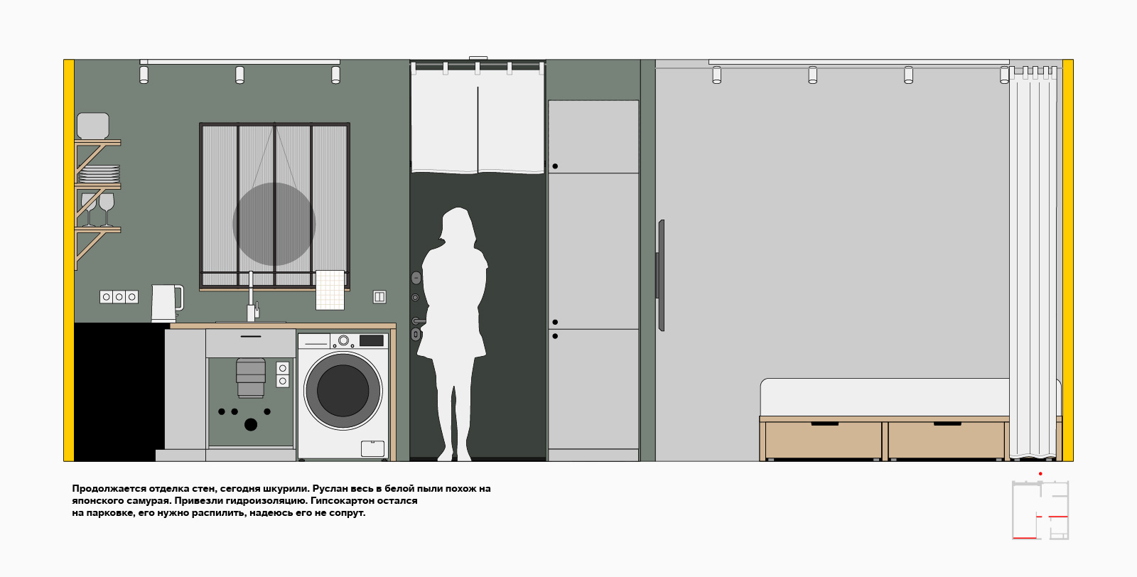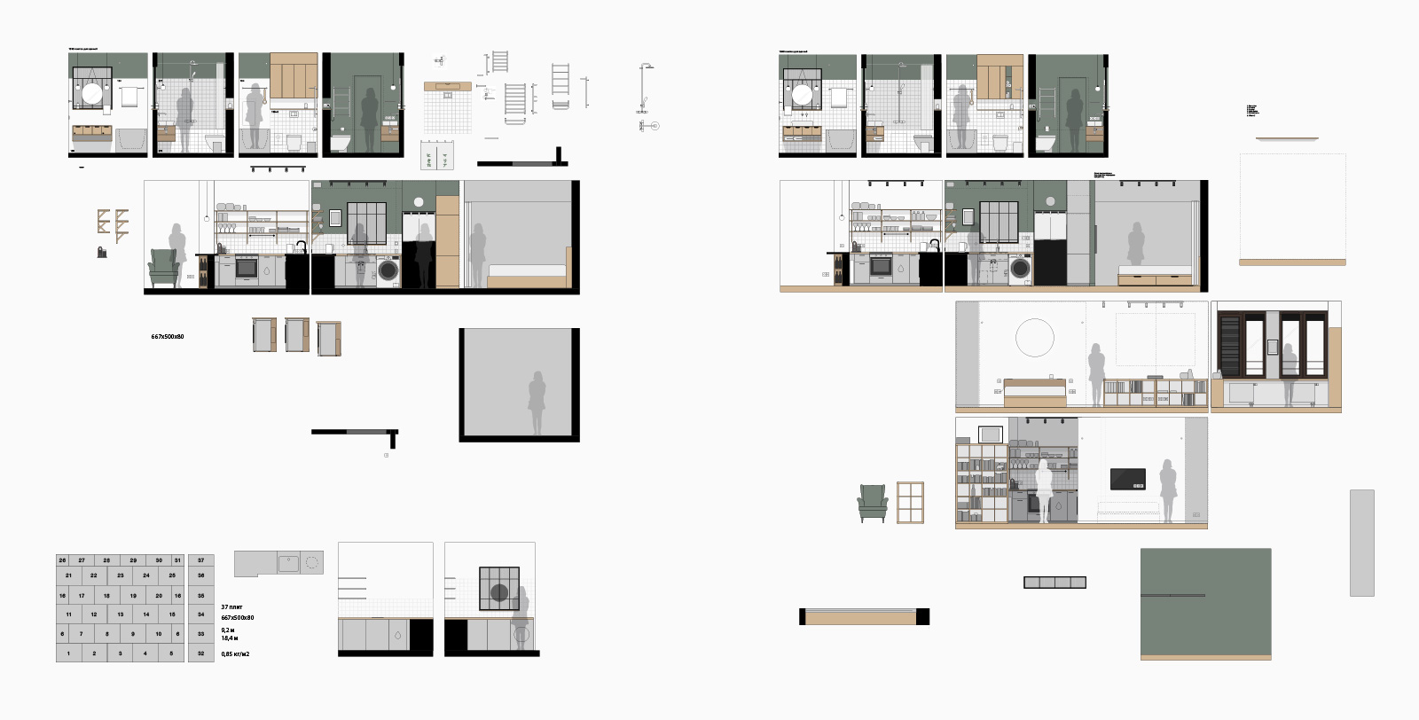Throughout the process of redesigning our apartment, I amassed a substantial collection of drawings featuring layouts, wall elevations, socket placements, transom fabrication schematics, furniture arrangements, and even curtain designs, including noren for the corridor. To ensure that these valuable resources didn’t get lost in the midst of various files, I decided to compile them into an album