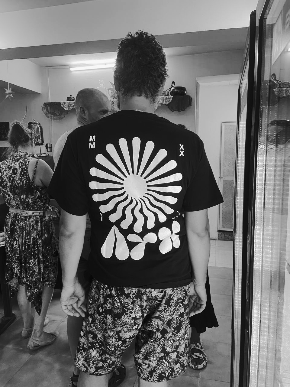 Every summer, we go kayaking with friends on the Lukh River, and every year I make merchandise for this event. The symbol for this year is the sun
