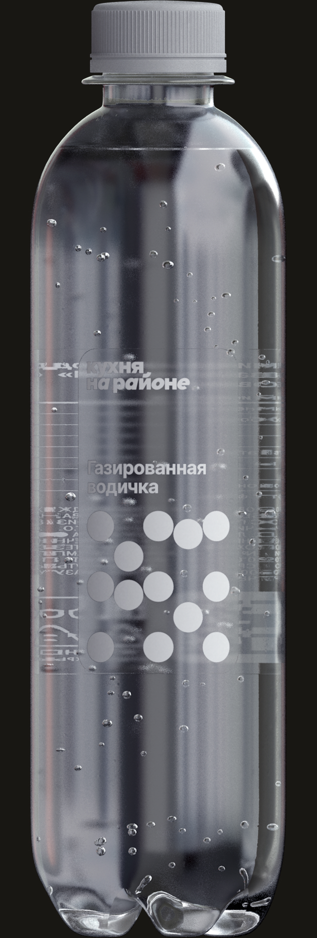 In a transparent bag there are clear bottles of ︎ still and ︎ sparkling water